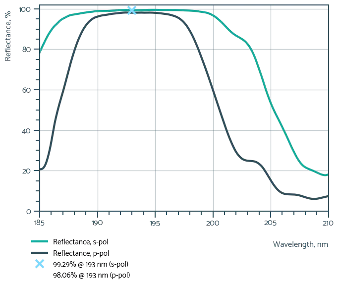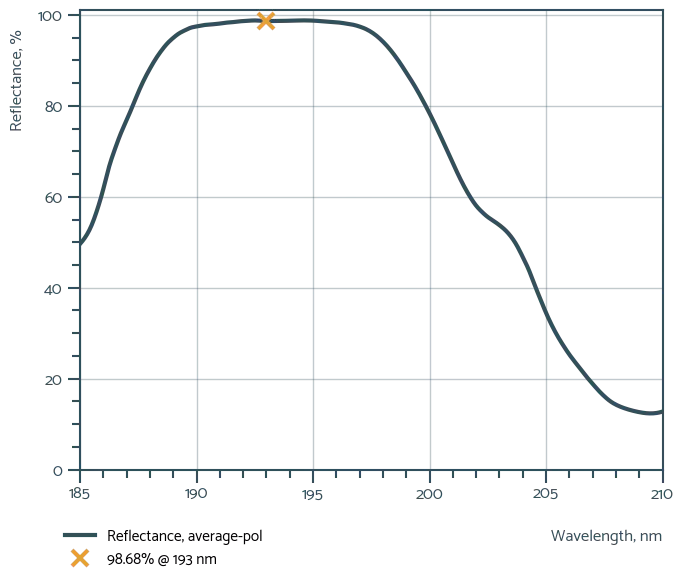 Deep UV mirror optimised for ArF lasers with no aging technology and higher than market-standard reflectivity.