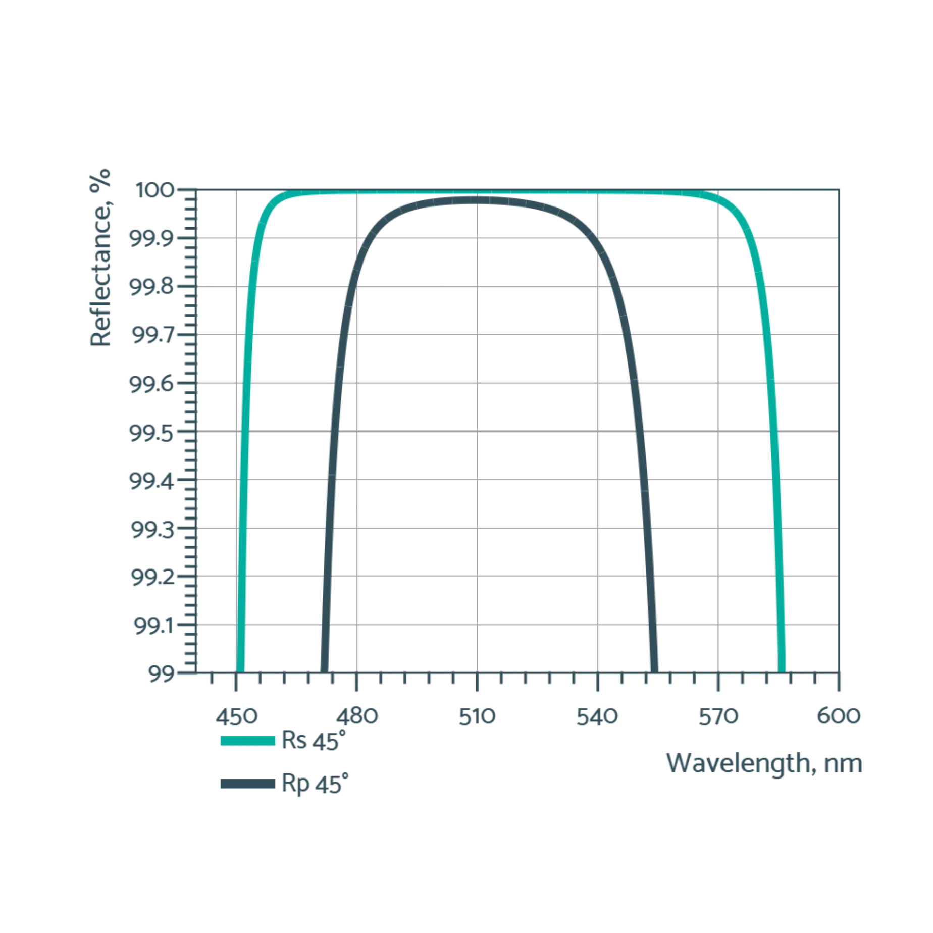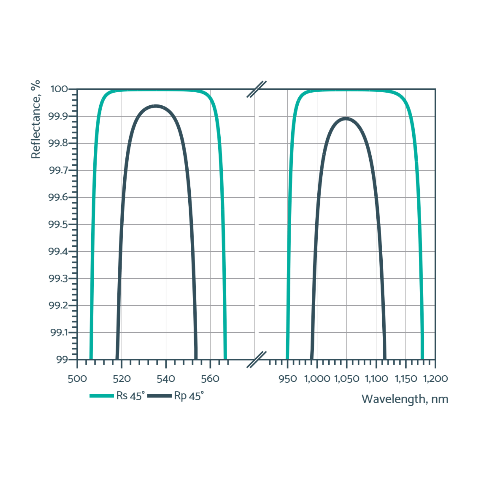 HRsp > 99.8% @ 1064nm + 532nm, AOI=45°