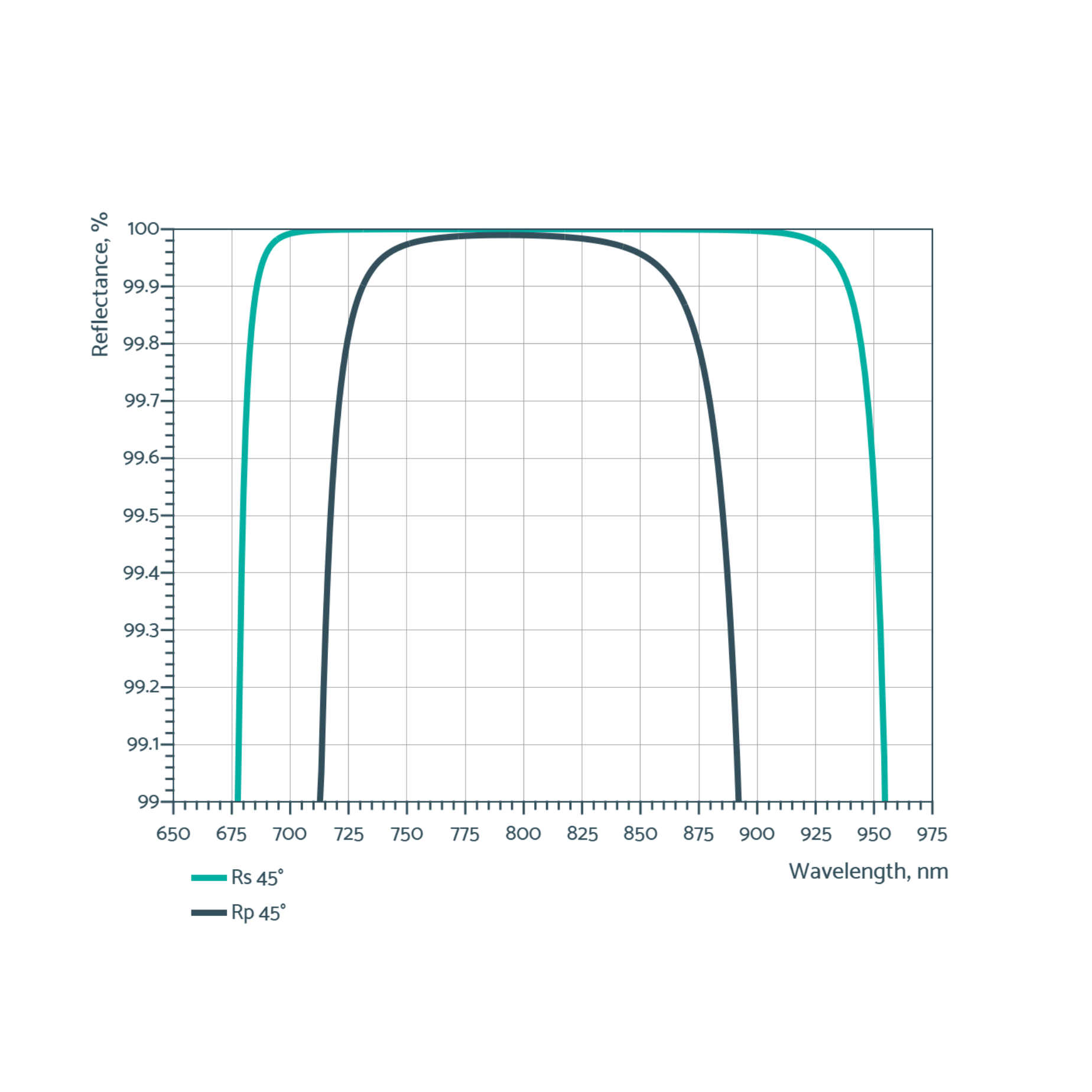 HRs >99.9 % @ 700 – 900 nm, HRp >99.5 % @ 730 - 870 nm, AOI=45°