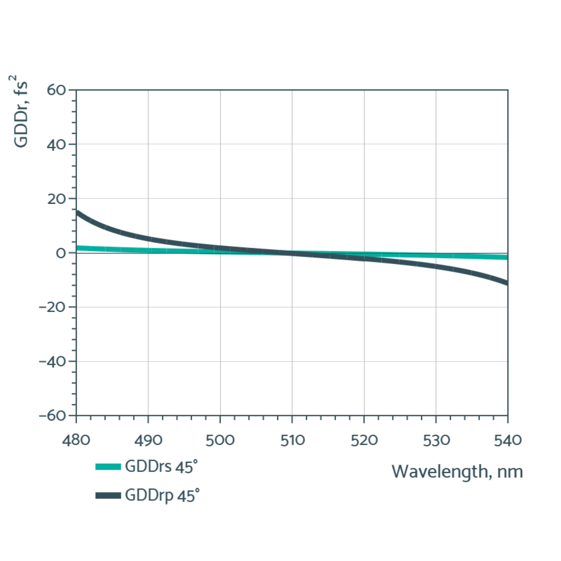 |GDD Rs, Rp|<20 fs² @ 500 - 530 nm, AOI=45°